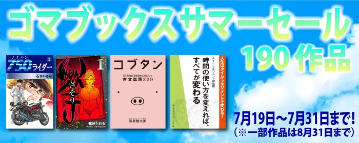 ゴマブックスサマーセールが7/19からスタート! Kindleストアなど3電子書店にて上半期話題の10作品が驚き価格で配信! 石井いさみ、中村うさぎ、本田健ら超有名作家の作品も!